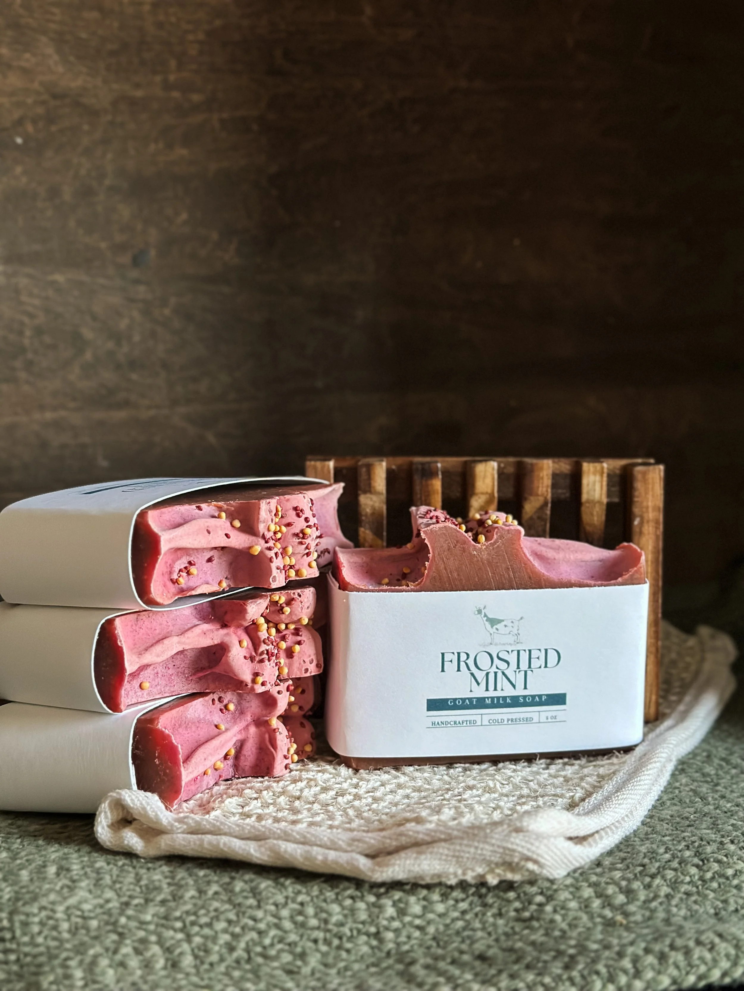 • Goat Milk is the ultimate super food for your skin. It is full of vitamins, such as A, B1, B6, B12, C, D, E, and minerals, such as zinc, copper, iron, and selenium. It also includes fatty acids, amino acids, citric acid, antioxidants, and enzymes.  Goat milk soap can feed the skin and nourish it. It has similar PH to human skin which contributes to its gentleness and absorption. It can be helpful in relieving skin inflammation. Goat milk is known to have strong anti-inflammatory properties.